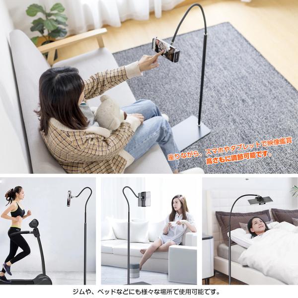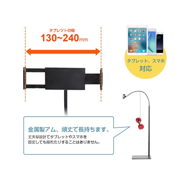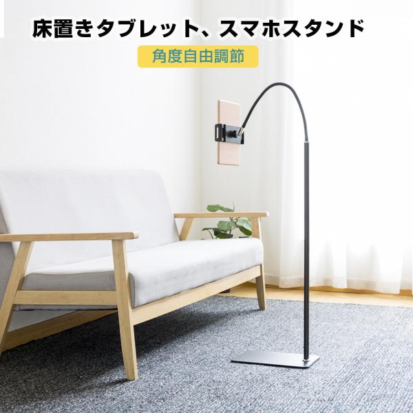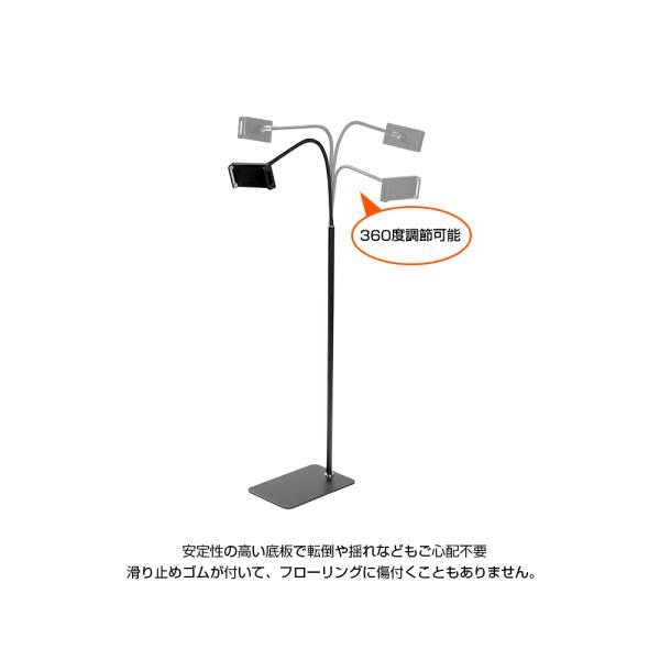 タブレットスタンド スマホスタンド 床置きタブレットスマホスタンド 自由調整 携帯床置きスタンド アームスタンド 展示会 店頭展示 オフィス用 ブラック