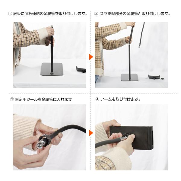 ●改善されたアーム式を採用しますので、好きな態勢に合わせて調整可能です。それで、挟む力も強いので、落下することありません、ご安心ください。