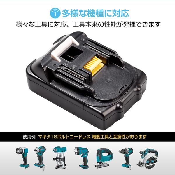 ●この互換品マキタBL1820Bバッテリーはマキタ純正バッテリーが対応できる機種であれば、同じ電圧、容量の互換品も問題なく対応できます。