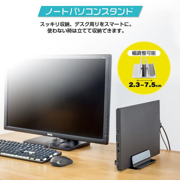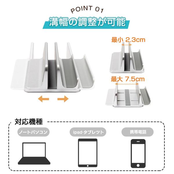 ノートパソコン スタンド PCスタンド 縦置き 収納 ホルダー幅調整可能 アルミ合金素材 タブレット ipad Mac mini MacBook Pro Air Thinkpad