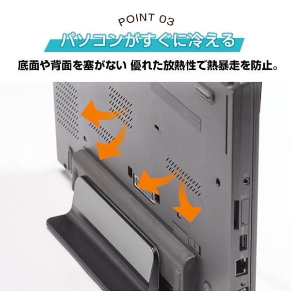 ●垂直にノートパソコンを設置することで、作業スペースやデスクスペースを節約できます。