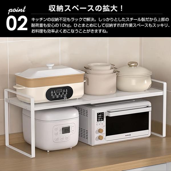 トースターラック レンジ上ラック 伸縮ラック キッチン収納ラック 約W29.5~55×D21×H19.5cm 積み重ね可能 卓上収納 ラック ホワイト
