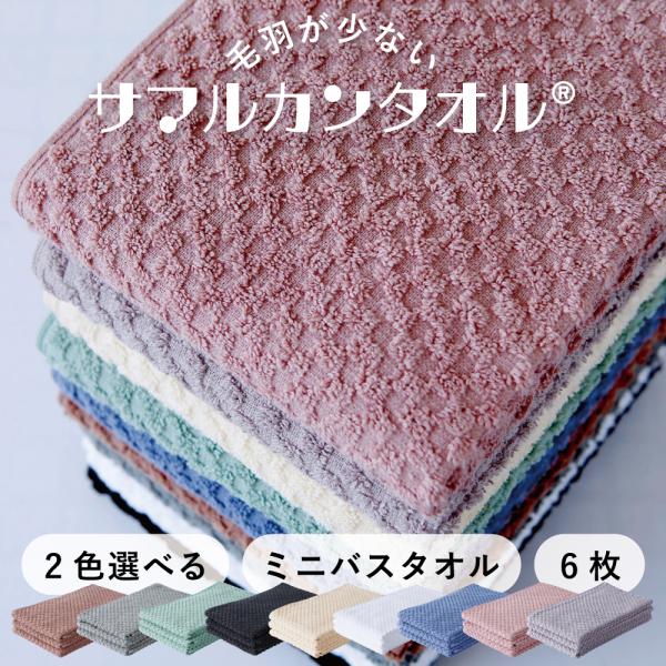 毛羽が劇的に少ないサマルカンタオル 【2色選べる!ミニバスタオル 6枚セット】 約40×100cm/約155g 空気をたくさん含んで 肌触りが優しい「デコボコ柄」