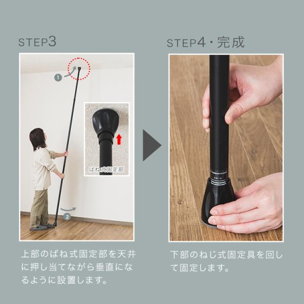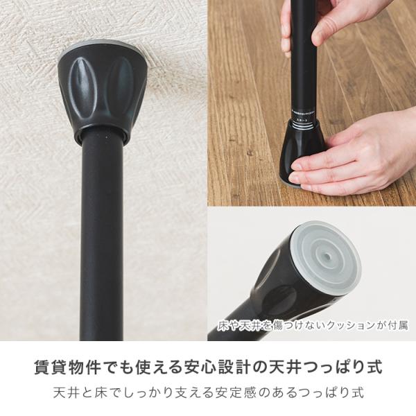 ●女性でも軽い力で簡単に設置できる天井つっぱり式のハンガーラックです。