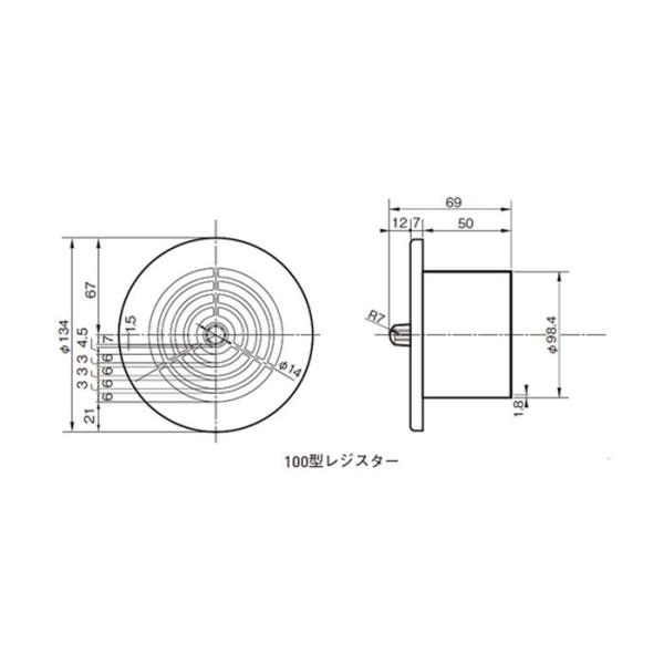 丸型レジスター 100型レジスター ABS ホワイトグレー パイプ径99×外径134mm 網なし 1台単位 適用パイプSU100 新築 リフォーム DIY 住宅 換気