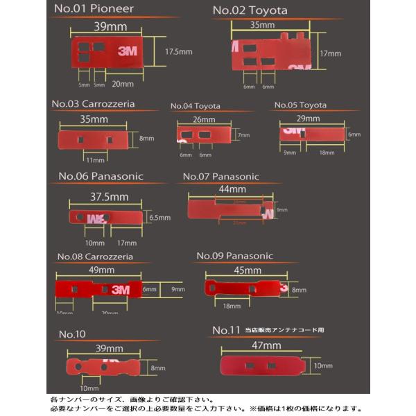 画像、サイズとお手持ちのアンテナコードのフィルムアンテナ接地部分をご確認の上、必要なNo、必要数をご選択下さい。