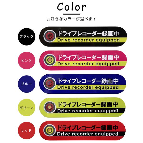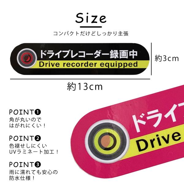 ドライブレコーダー ステッカー ドラレコ シール 防水 UVラミネート加工 録画中 あおり運転 危険運転 迷惑行為 対策 約13x3cm 新色 追加 9色 REC 車載 カメラ