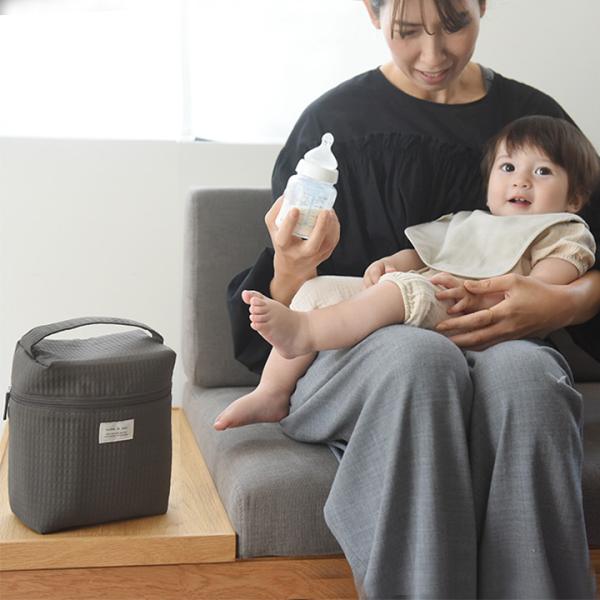 たっぷり大容量でミルクセットをまるごと持ち運びができる哺乳瓶ポーチ。保冷保温つきだから、持ち歩きも安心。蓋が大きく開いて中が見やすく出し入れもスムーズなアイテムです。