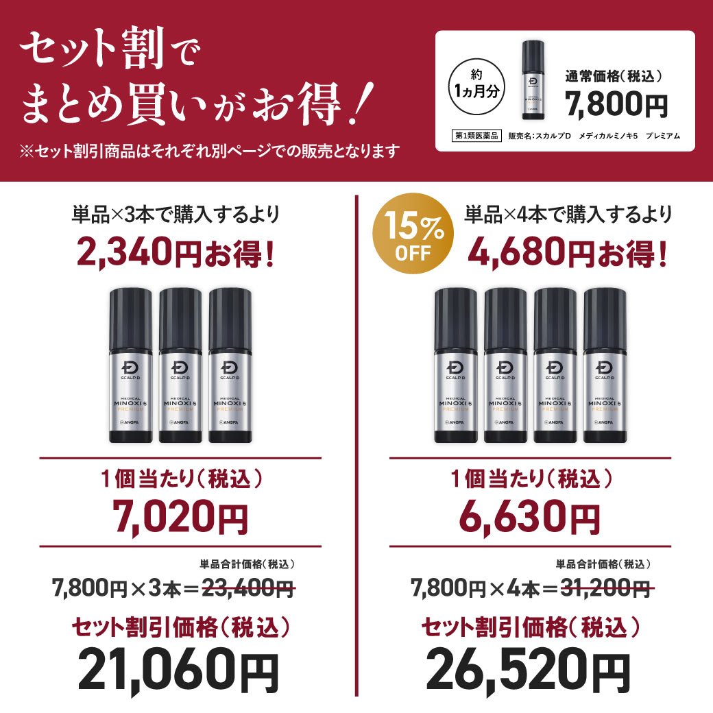 スカルプD 発毛剤 ミノキシジル メディカルミノキ5 プレミアム 4本 発毛 育毛 育毛剤 メンズ 男性 第1類医薬品 5% 問診8の「図*1」は画像2枚目