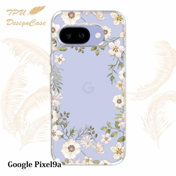 Google Pixel 9a ケース ホワイトフラワー 花柄 クリア 透明 ソフト TPU グーグルピクセル 9a カバー フラワー おしゃれ 耐衝撃 かわいい