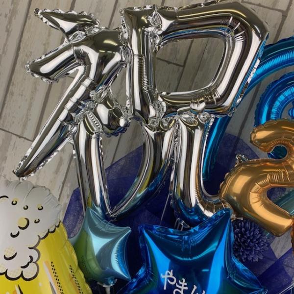 祝の漢字型バルーンの珍しいギフトアレンジです