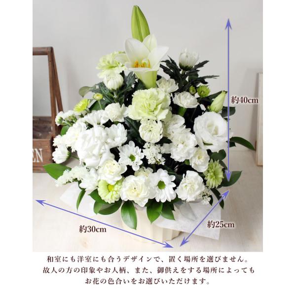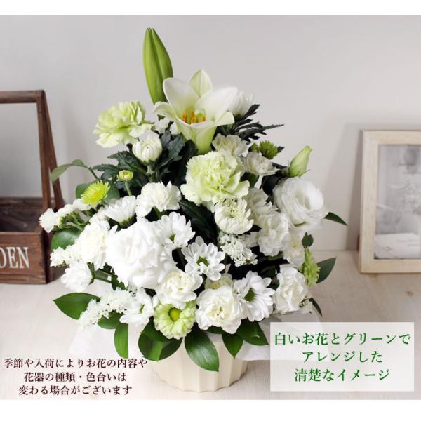 翌日配送 お供え 花 お彼岸 初彼岸 ユリ アレンジメント カサブランカの入った白とグリーンの清楚なアレンジ 花かご お悔やみ 喪中 喪中見舞い 新年 爆買