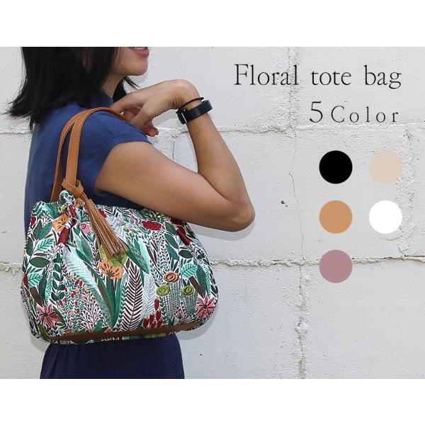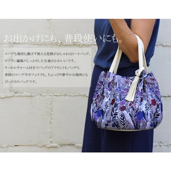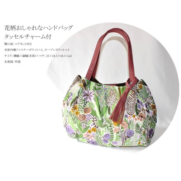 ボタニカル柄 トート 植物花柄のおしゃれなバッグ タッセルチャーム付 ハンドバッグ トートバッグ バッグ ボタニカル柄 ゴブラン織風 母の日 ギフト
