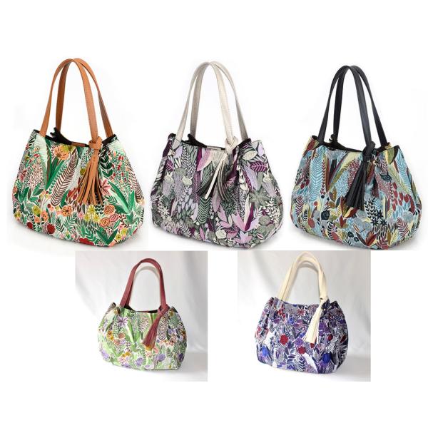 ハンドバッグ トートバッグ ボタニカル柄 ゴブラン織風 5カラー