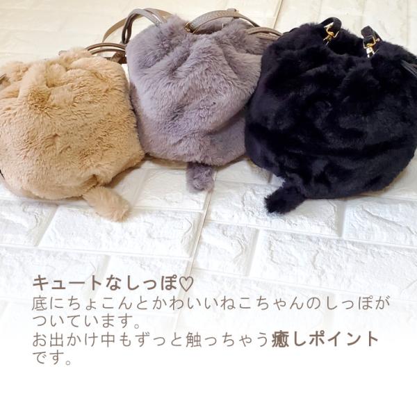 猫ショルダー ショルダーバッグ にゃんこ ファー 巾着 きんちゃく ショルダー レディース ポーチ アニマル あったか 可愛い ふわふわ プレゼント 猫 ネコ ねこ