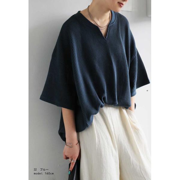 こなれ感、即完成。オニワッフルカットソー カフタン襟 半袖 トップス レディース・再入荷 500ptメール便可 爆買