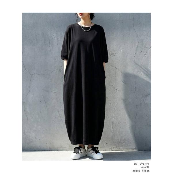 Tシャツワンピ 汗染み 防止 綿 五分袖 コクーン ゆったり
