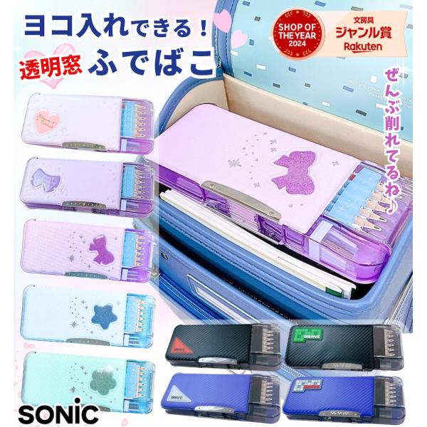 うかサポ ソニック / 筆箱 ふでばこ ウカサポ えんぴつチェック 両面筆入 Wシート補強 うっかりサポート 鉛筆削り付き 透明 小学生 小学校 ペンケース おしゃれ