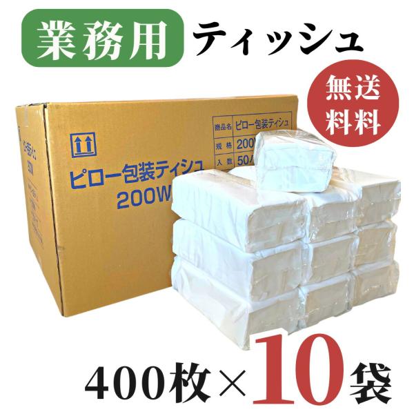 業務用 ティッシュペーパー 200組 ( 400枚 ) 10袋 / 送料無料 詰め替え用 ティシュペーパー 田子浦パルプ 高級 箱なし ソフトパック ピロー包装ティシュ