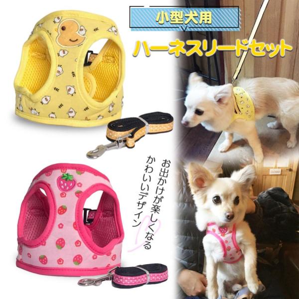 小型犬 ハーネス 抜けない ハーネスベルト リード セット 犬 ひよこ イチゴ 人気 おすすめ かわいい 散歩 バックル メッシュ 革 ポメラニアン