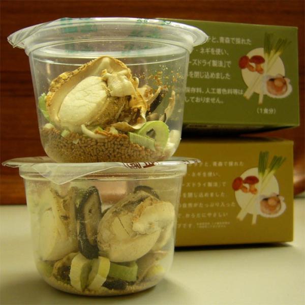 陸奥湾産の丸ごとほたて入。フリーズドライ製法により、ホタテの旨みが凝縮!お湯を注ぐと、大きくふっくらとした、プリップリのほたてが蘇ります。