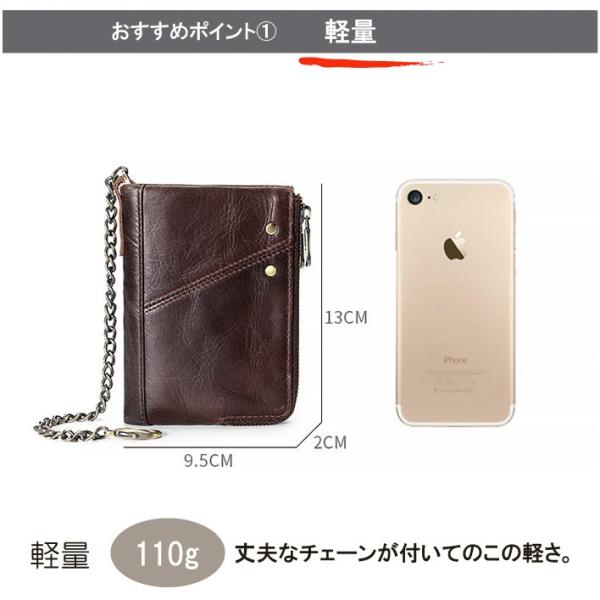 牛革 二つ折り財布 チェーン付き メンズ レディース スキミング防止 薄型 軽量 コンパクト 本革 財布 ギフト プレゼント 人気 新春セール AMgrocery公式