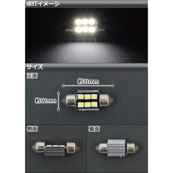 LEDルームランプ ルームランプ ルームライト 車内灯 室内灯 T10 31ミリ T10×31 31 31mm 6個 6灯 6発 汎用 LED ヒューズ球 タル型 樽型 両口金 まくら球 枕球 枕型球 枕型 CREE 3535 バルブ 白 white ホワイト 電球 発光 ライト ランプ 照明 センター マップ バニティ バニテイ バイザー カーテシ フット ラゲッジ トランク フロント ルーム キャンセラー カンバス CANBUS 4.5W 4.5ワット 270LM 270ルーメン 12ボルト キャンバス 4562430297048