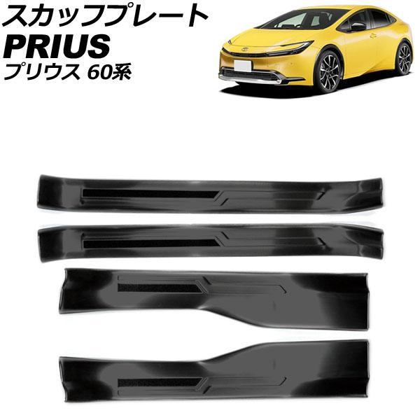 スカッフプレート 内側 トヨタ プリウス 60系 2023年01月〜 ブラック ステンレス製 ヘアライン仕上げ 入数:1セット(4個) AP-SG345-BK