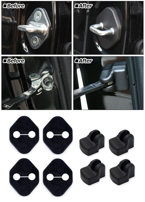 ドアロックストライカー&ストッパーカバー ブラック ABS製 トヨタ/スズキ 汎用 ヴォクシー プリウス ランディ など 入数:1セット(8個) AP-AS958
