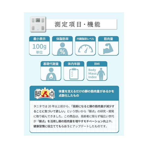 タニタ 体重計 体組成計【業界初 脚点判定(体重を支える足の筋肉量を点数化)】体脂肪率/筋肉量/内臓脂肪レベル/体重/体内年齢/基礎代謝量/BMI/乗