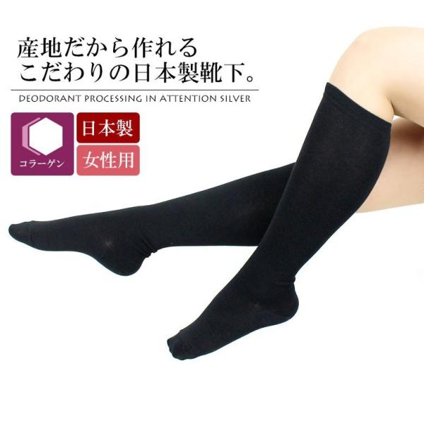 靴下 レディース コラーゲン 保湿 ハイソックス 1足 黒 オフィス 38cm丈 38センチ丈 長さ ソックス 日本製 ブラック 女の子 女子高生 高校生 中学生 学校用 制服 スクールソックス スクール おしゃれ 可愛い 敬老の日 暖かい