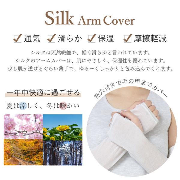シルクのアームカバーは、肌にやさしく、保湿性も優れています。