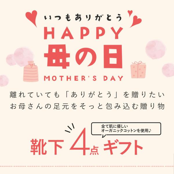 母の日セット ラッピング込 ギフト プレゼント 靴下 レディース 4足 セット 綿100% ショート丈 口ゴム ゆったり ルームソックス 冷え性 履き口 フットカバー