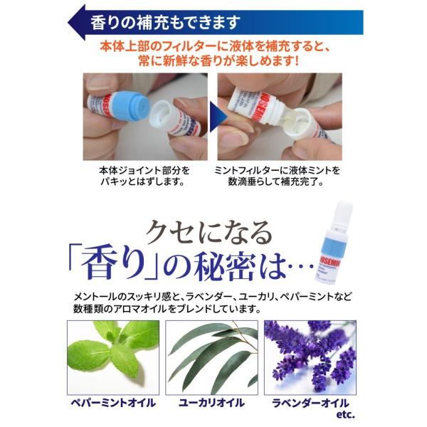 ペパーミント、ラベンダー、ユーカリ、メンソールの爽やかな香りを、フィルタータイプで楽しめます。