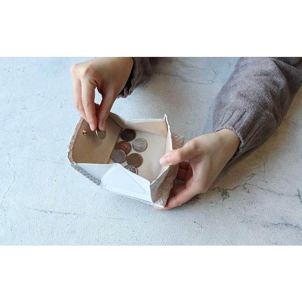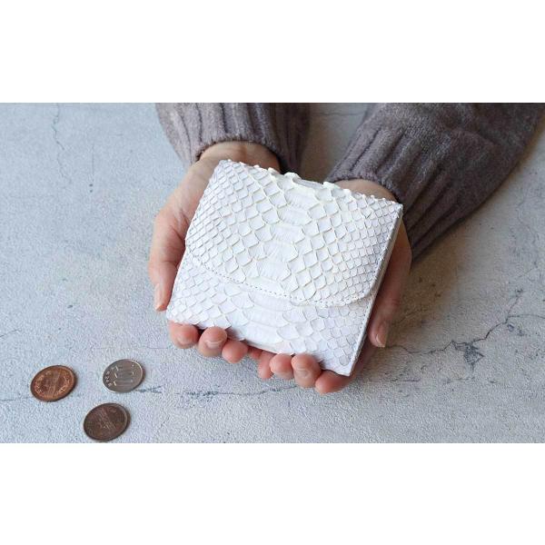 あえて天然のパイソンの模様を薄く残すことで、真っ白の財布を持つことに抵抗がある方にも、持っていただきやすいようになっています。