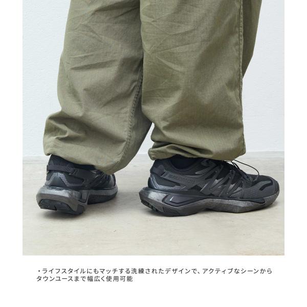 サロモン「XT」シリーズ最新作。都市のアスファルトから自然のトレイルまで対応する汎用性が魅力。独自ミッドソール技術PU.RE(PUREフォーム)が安定性と快適性を高め、反発性とクッション性を両立。耐久性と通気性に優れた合成繊維×合成皮革アッパー、Contagripアウトソールで幅広い路面に確かなグリップ。洗練されたデザインでタウンユースにもマッチ。ややタイトな作りで、幅広・甲高の方は0.5〜1.0cmアップ推奨。片足約325g、ベトナム製。