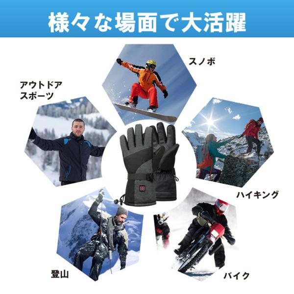 防寒 防水 電熱グローブ 5000mahバッテリー×2個付き