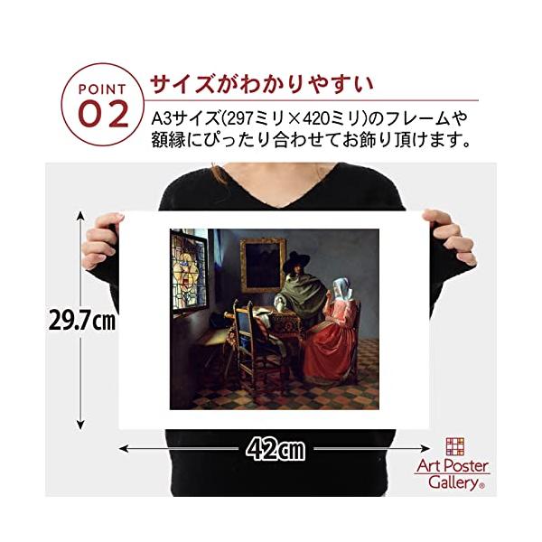フェルメール 作品 ポスター A3サイズ 紳士とワインを飲む女 グッズ 絵画 複製 おしゃれ インテリア アート パネル 名画