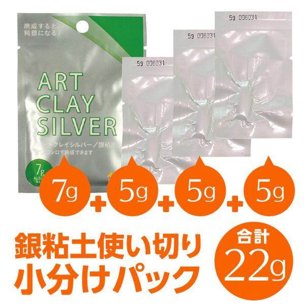 お得なアートクレイシルバー小分けパック(7g+5g+5g+5g合計22g)です。