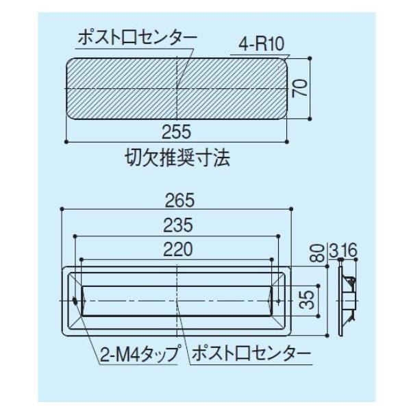 シブタニ ポスト口 DP-84 シルバー ドア用郵便差入れ口 玄関扉用