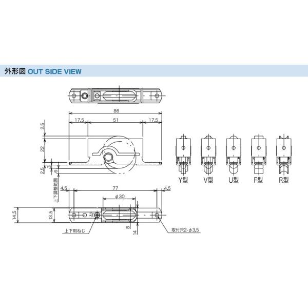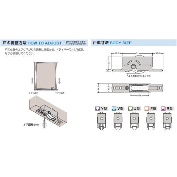 木製引き戸用 調整戸車 V型