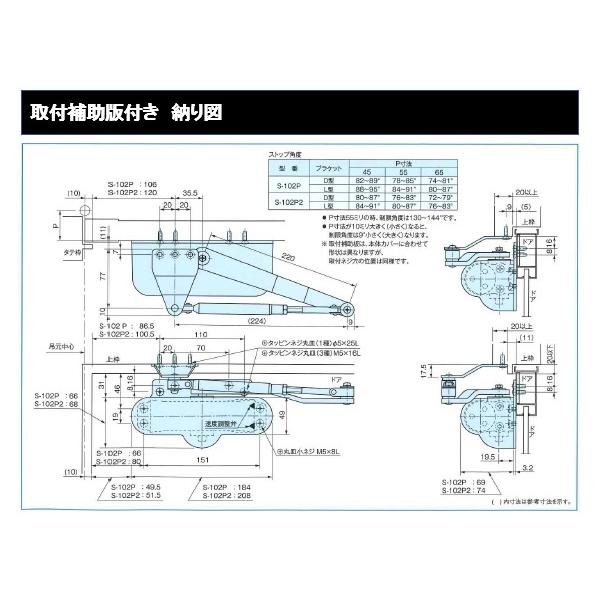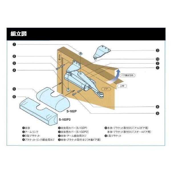 リョービ ドアマン 取替用ドアクローザー S-102P2 RYOBI ドアクローザードアマンマークII 〈シルバー/ブロンズ〉 交換 取替え 玄関用 勝手口用 左右勝手兼用
