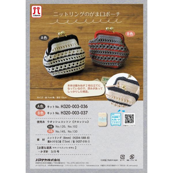 ハマナカ ニットリングのがま口ポーチ 手作りキット 白黒