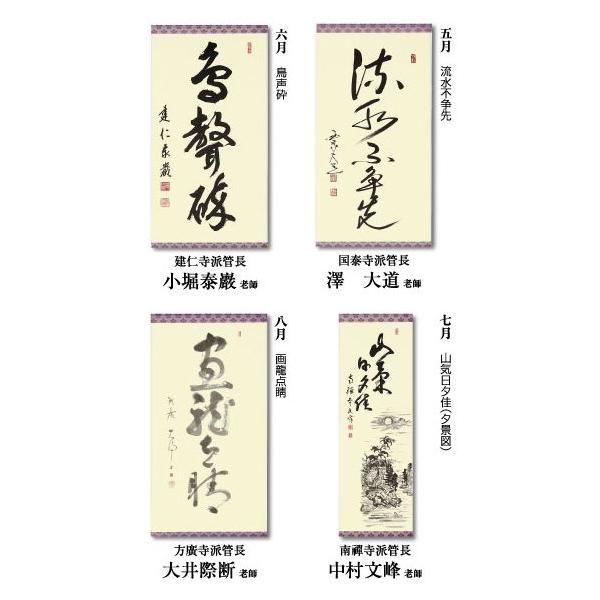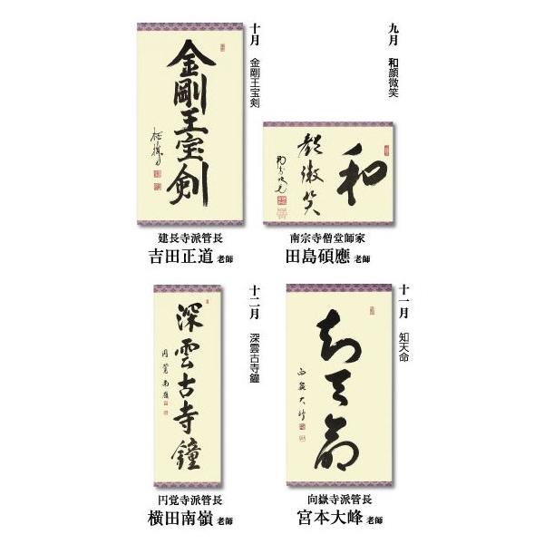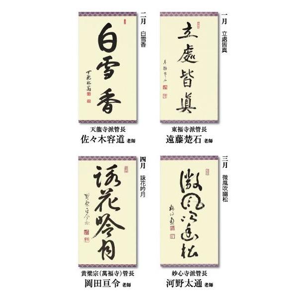 このカレンダーは日本禅宗の中の臨済宗・黄檗宗の現代管長・師家の筆による墨蹟を集めた大変価値あるものです。実践と体験によって伝えられる禅語の数々を各月の和紙に再現しています。