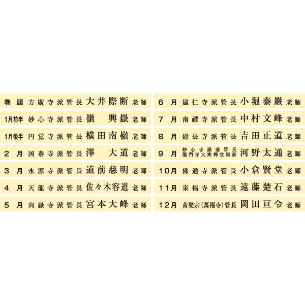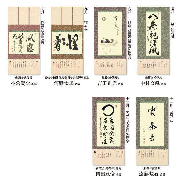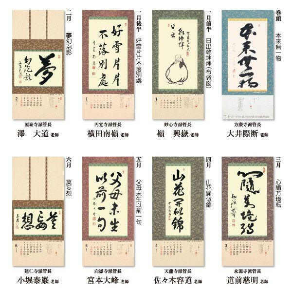 このカレンダーは日本禅宗の中の臨済宗・黄檗宗の現代管長・師家の筆による墨蹟を集めた大変価値あるものです。実践と体験によって伝えられる禅語の数々を各月の和紙に再現しています。