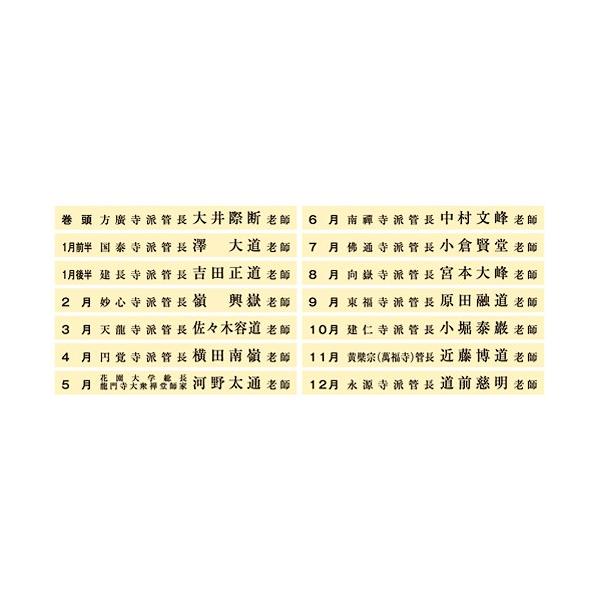 このカレンダーは日本禅宗の中の臨済宗・黄檗宗の現代管長・師家の筆による墨蹟を集めた大変価値あるものです。実践と体験によって伝えられる禅語の数々を各月の和紙に再現しています。