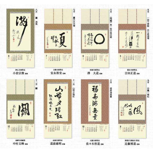 このカレンダーは日本禅宗の中の臨済宗・黄檗宗の現代管長・師家の筆による墨蹟を集めた大変価値あるものです。実践と体験によって伝えられる禅語の数々を各月の和紙に再現しています。
