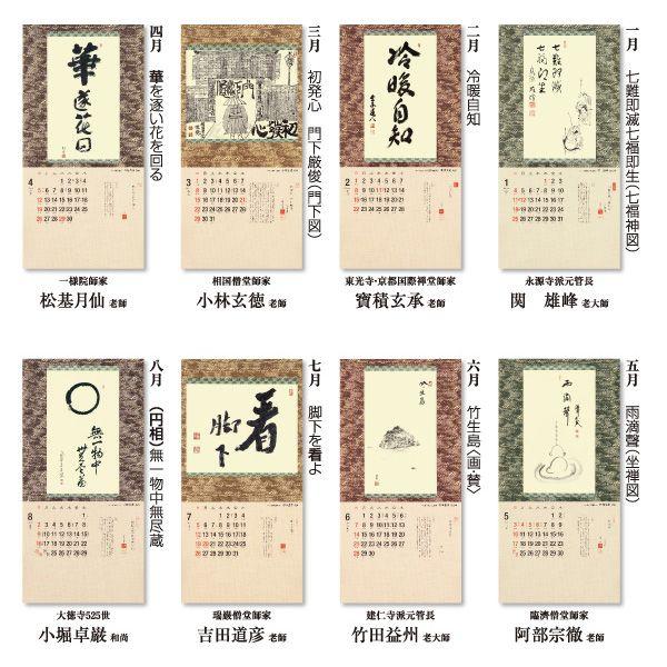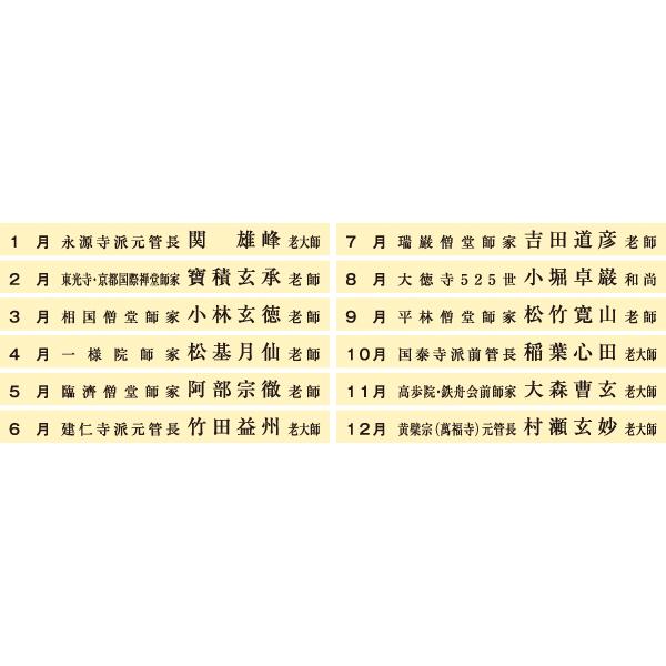 近代の高僧墨蹟を集めた小判カレンダーです。大き過ぎない洒落た趣で、茶室や玄関先など幅広くお使い頂けます。また、こちらは海外の方向けに巻末に英訳が掲載された特別仕様版です。