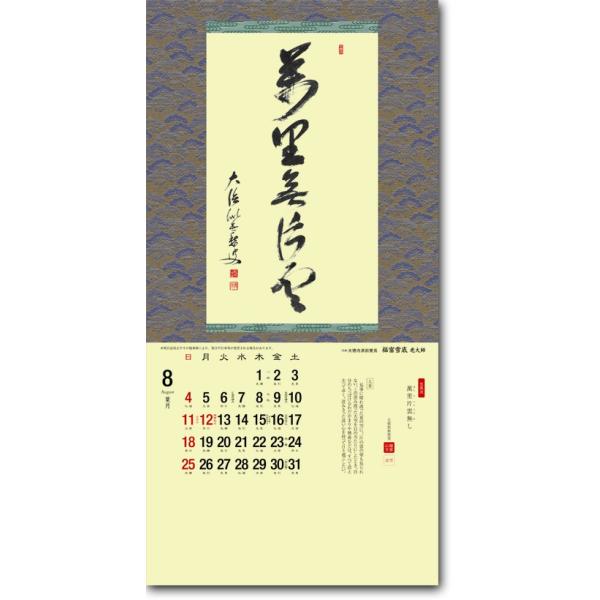 近代の高僧墨蹟を集めた小判カレンダーです。大き過ぎない洒落た趣で、茶室や玄関先など幅広くお使い頂けます。