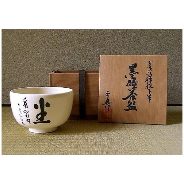 ◆上品な質感が漂う京の陶器。抹茶茶碗には高僧による墨蹟が絵付けされ、一層趣きを引き立たせます。